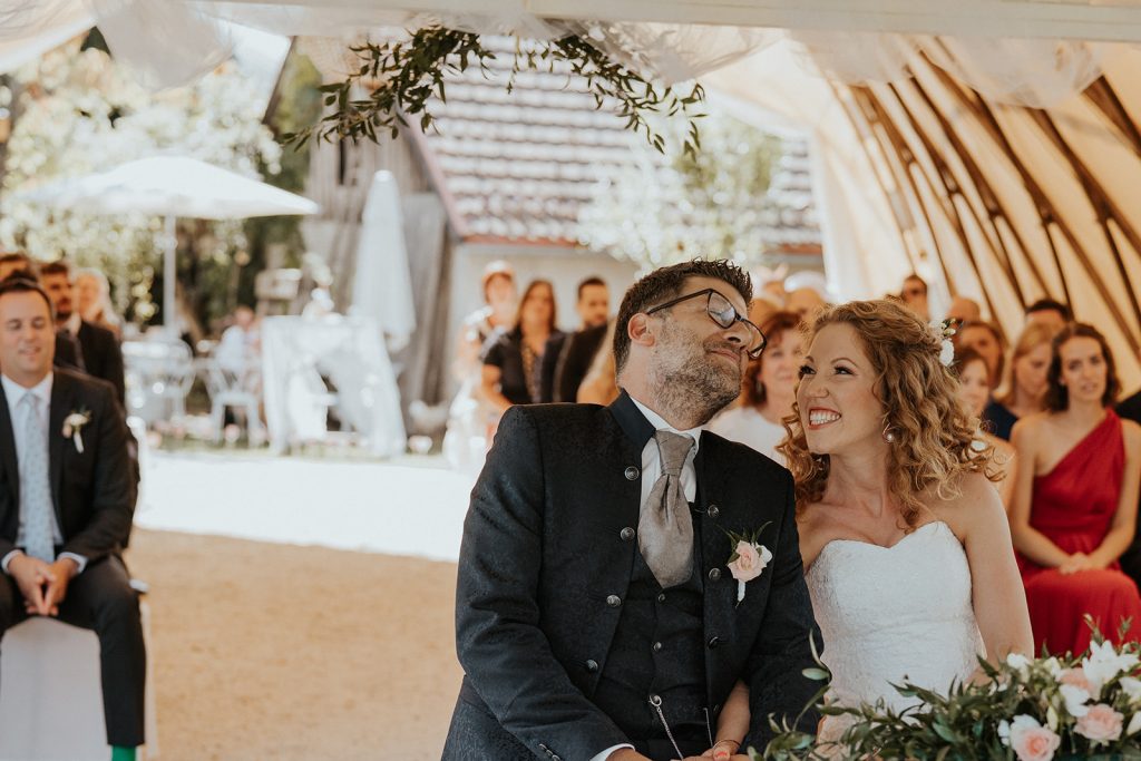 Bettina und Florian haben in der romantischen Träumerei im Südburgenland ihre Hochzeit gefeiert. Die beiden haben schon beim Getting Ready mit ihren besten Freunden so viel Spaß gehabt. Als sie sich dann bei der Trauung zum ersten Mal gesehen haben, konnten sich die beiden vor Freude nicht mehr halten. Sie haben sich gegenseitlich so intime Worte gesagt, dass bei allen – inklusive mir – die Tränen geflossen sind.